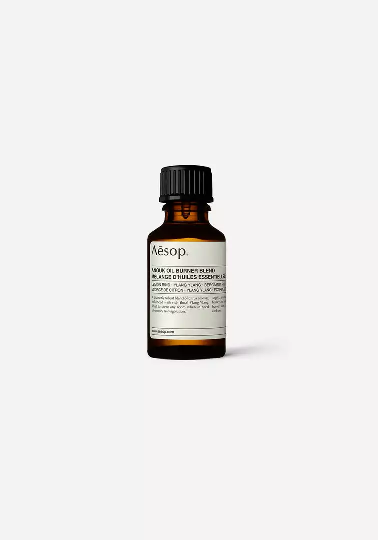 Anouk is a perfectly formulated oil burner blend from Aesop, for calming repose. A careful blend of citrus aromas, enhanced with Bergamot Rind; the perfect antidote to stress and hurriedness. We use this product in our stores.