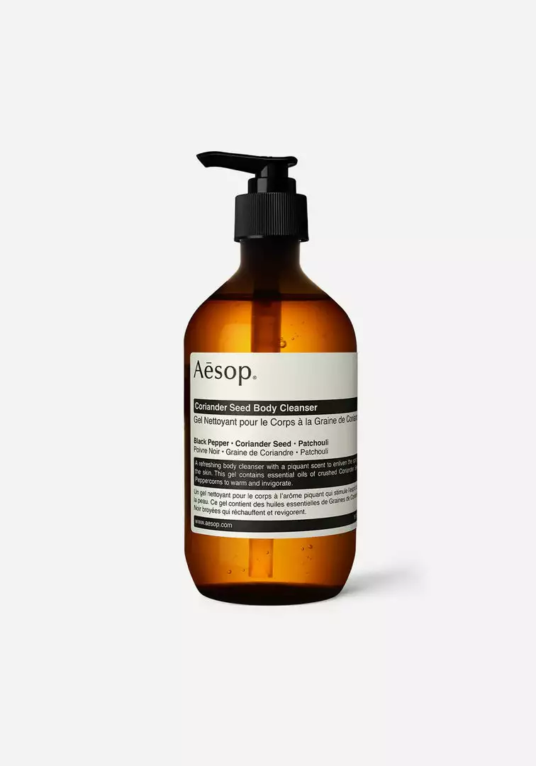 Aesop’s Coriander Seed Body Cleanser is a refreshing hand and body cleanser for all skin types. This low-foaming cleanser is noted not only for its superb cleansing properties, but for its warm, unorthodox scent derived from the oils of crushed coriander seeds and black peppercorns. An invigorating cleansing experience to enliven both skin and spirit.