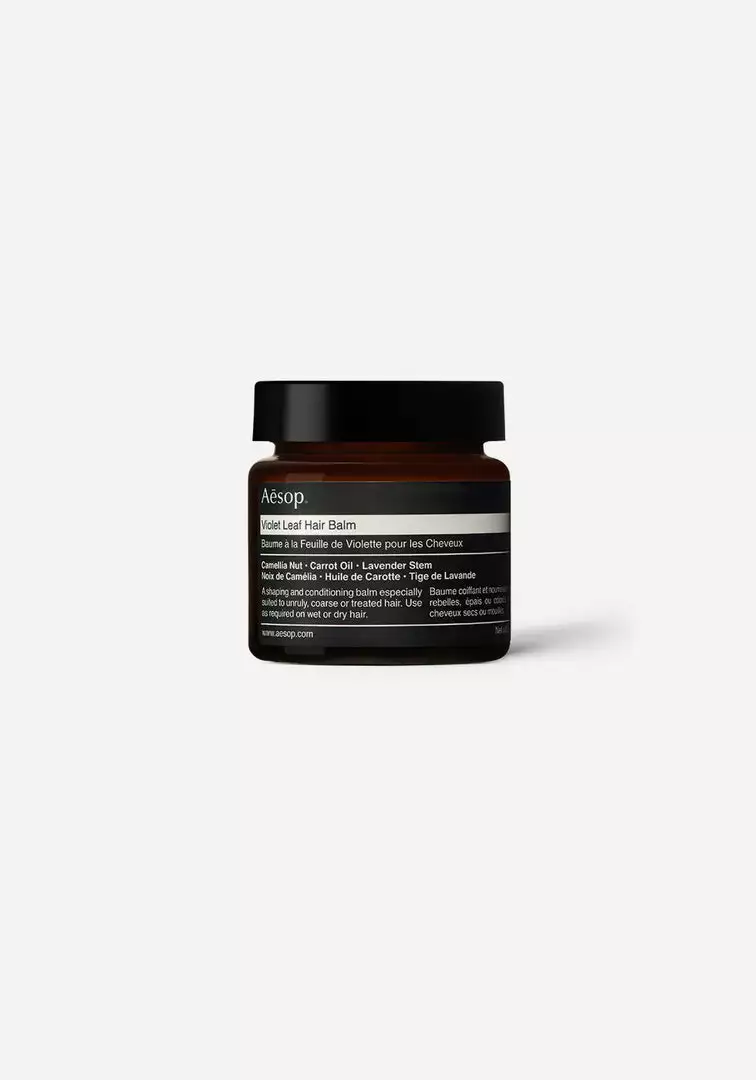 The Violet Leaf Hair Balm by Aesop is a shaping balm enhanced with nourishing butters and hydrating nut oil extracts that conditions, softens and shapes hard-to-manage hair.
