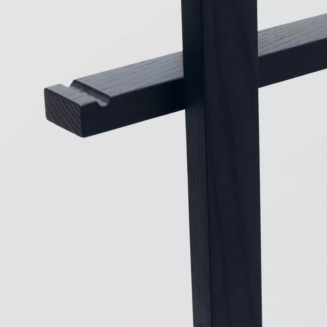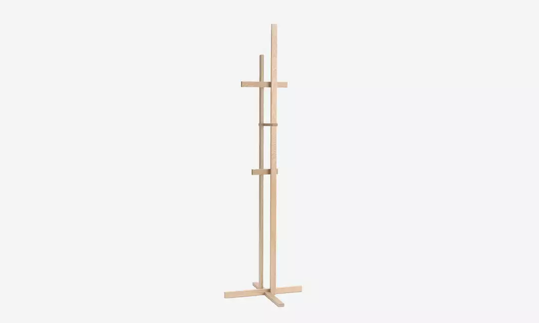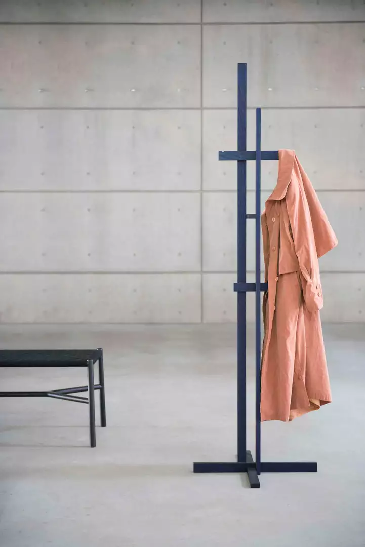 The Elements coat stand by Ariake is a functional sculpture in a house. The construction elements are made of one type of timber in different lengths. As they are jointed together in different places with various angles and directions, the object changes its character according to the side where it is looked at. The design has the face side which hangs more clothes and the back side with less hanging space which is designed to be facing the wall.