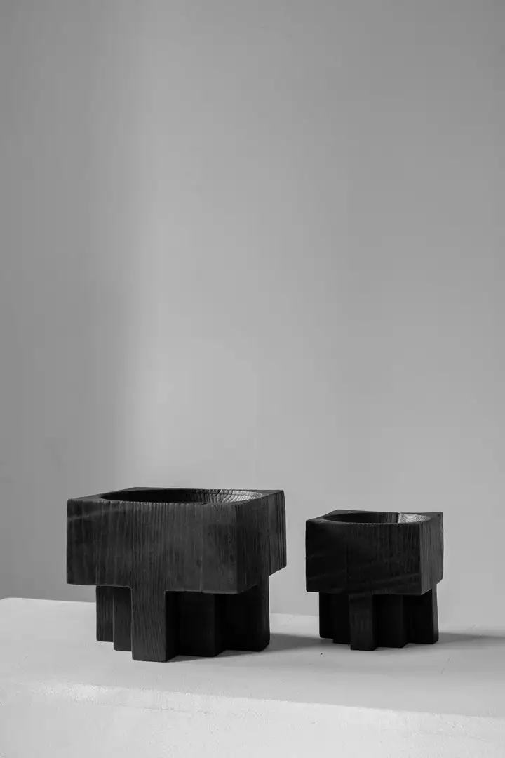 The Cross Pots by Belgian designer, Arno Declercq are sculptural pieces that serve as both objects and works of art. Handcrafted from Belgian Oak, the process is steeped in craft and history. Bespoke and monolithic, these pots are available in two sizes.