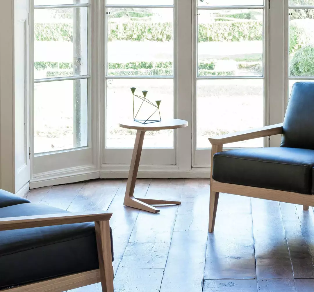 The Cross Side Table by Matthew Hilton has a solid oak or walnut top and base with a chamfered edge detail. The side table’s simple silhouette and compact footprint make it great for small-spaces and has been a popular choice for our customers looking for a modest side table.