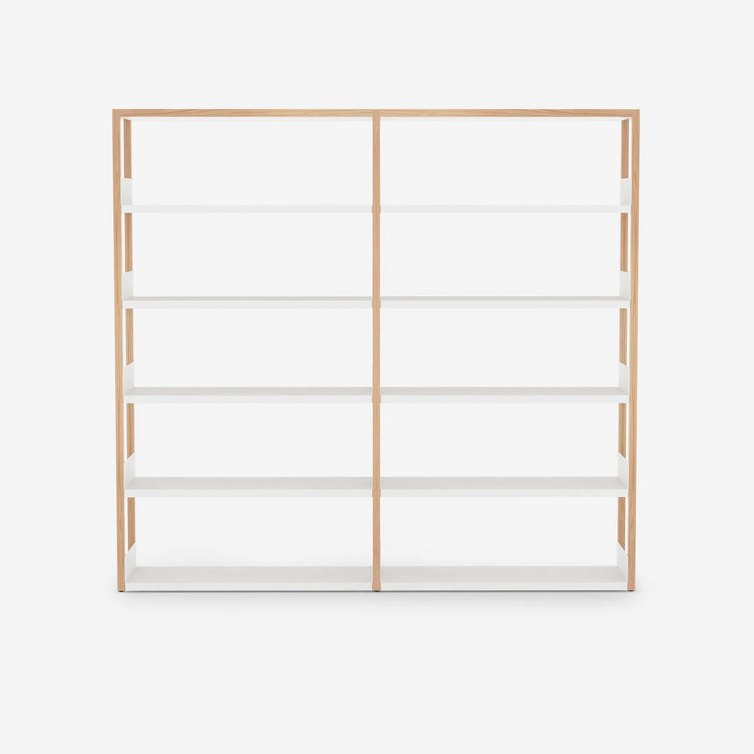 Double bay frame options are available in three sizes. Low: requires 6 tiers, medium: requires 10 tiers and tall: requires 12 tiers – for deep and shallow boxes, these pair with a short flat or tray shelf to fill one shelving tier.Â