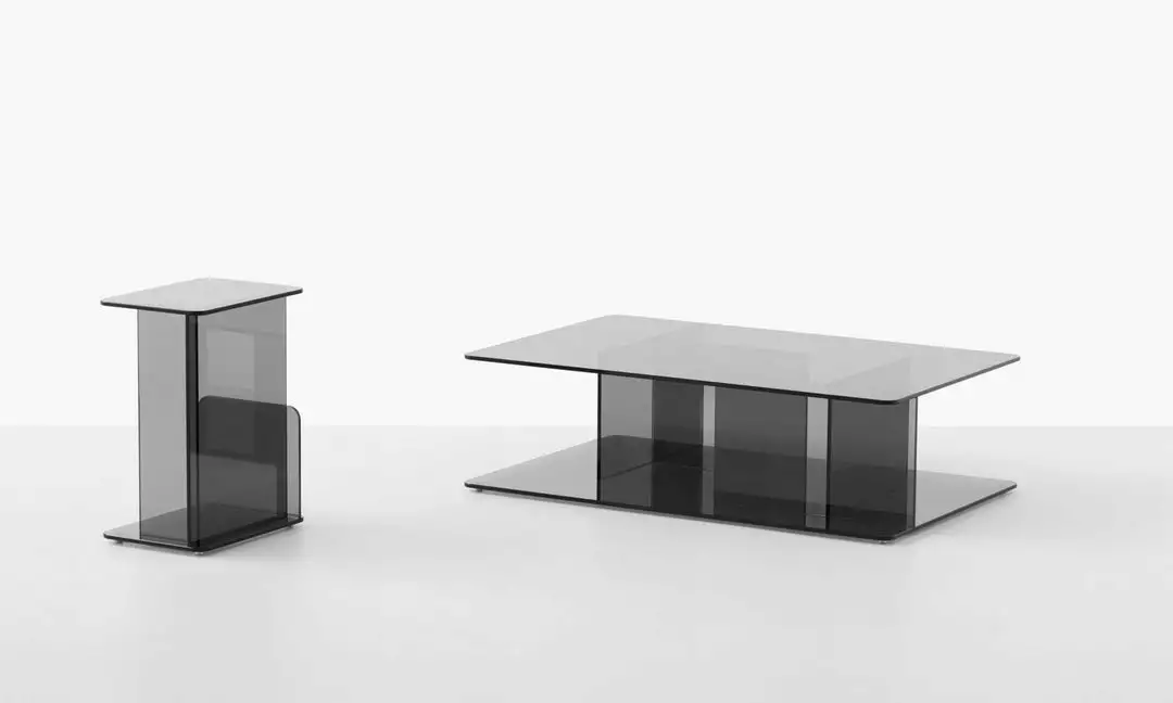 The right-angles of the Lucent tables create divisions inside which can be used to display objects or store books and magazines. Using a classic material such as tempered glass makes these handsome, yet delicate tables ideal for the home, or within hotels and bars.