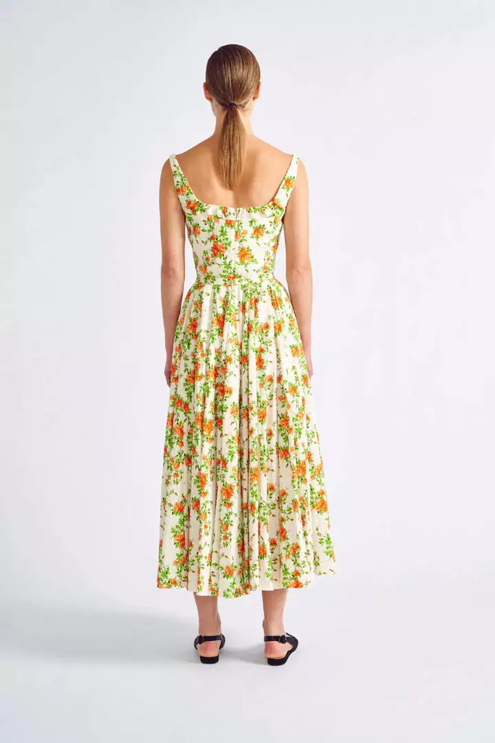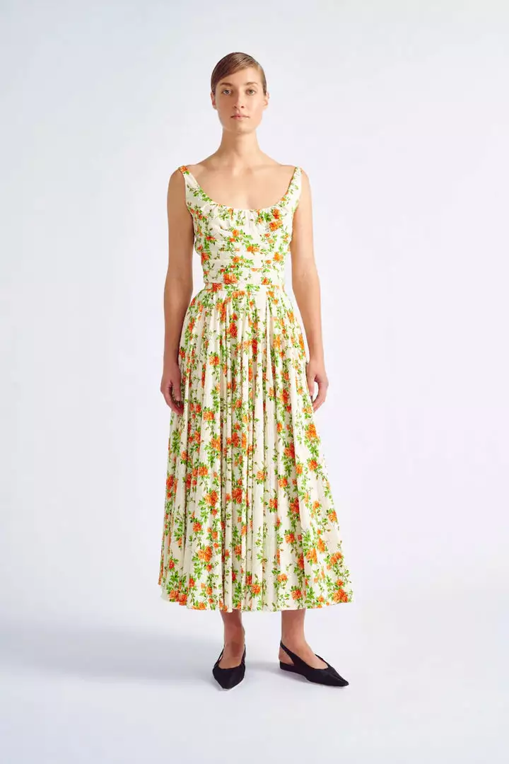 The beautiful Angie top by Emilia Wickstead is crafted from softly textural quality of Bibiano cotton in a refreshing orange rose pattern. Gentle pleating across the neckine and bodice lends this floral printed sleeveless top an element of understated feminine elegance. Perfect for day-time events or an afternoon of hosting.
