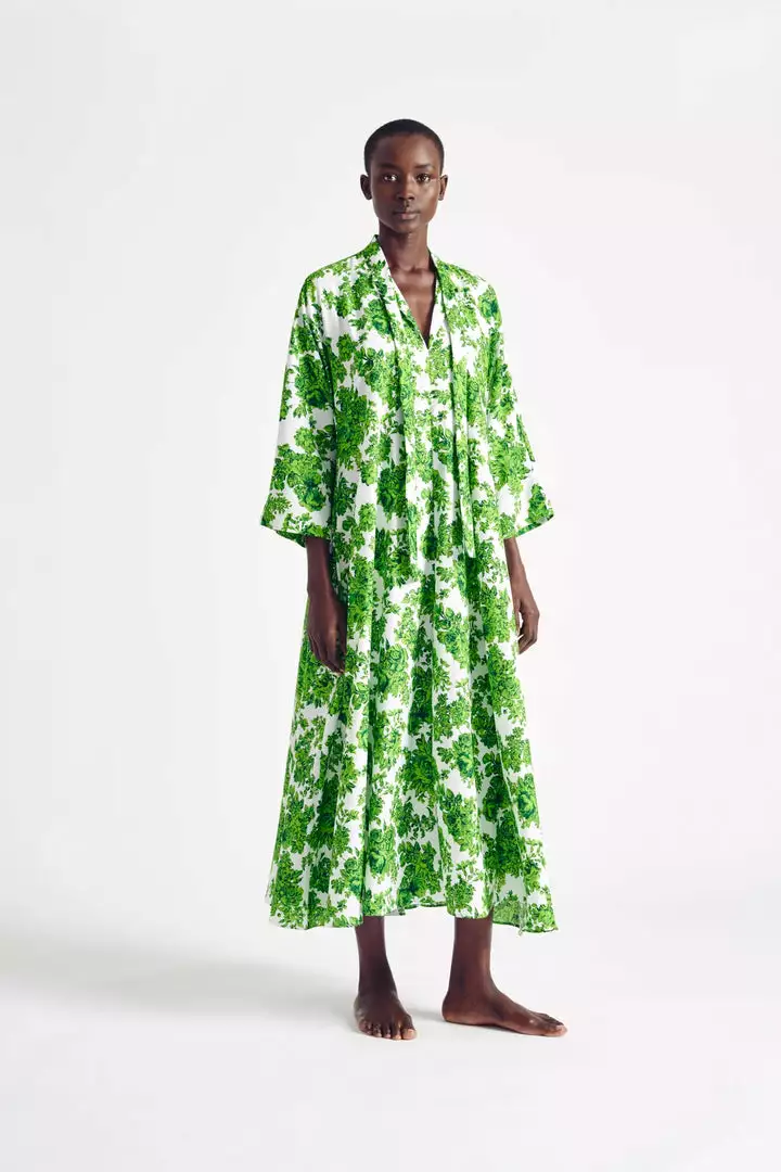 Crafted from organic cotton poplin, the Lovie kaftan by Emilia Wickstead is printed in her signature green rose rose print motif. Finished with long neck ties and side slip pockets for an effortless vacation look. Dress up or down, on vacation or out to lunch.