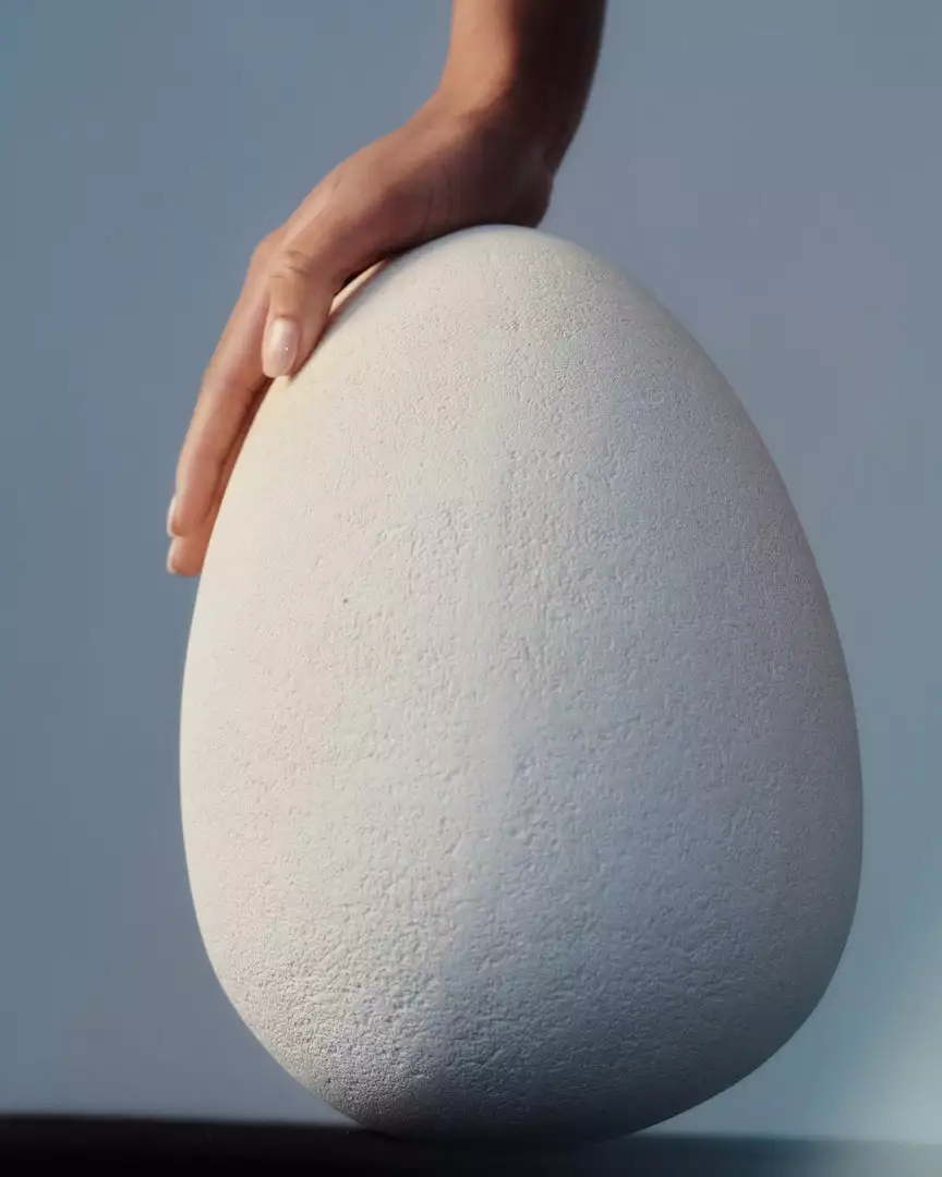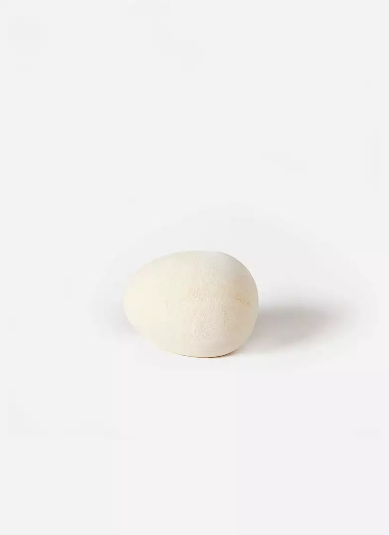The Fourth St. egg sculpture in Oamaru stone. Textured, sculptural and weighty. The Limestone Egg serves as an ornament for your shelf or coffee table, or functional as a door stop.
