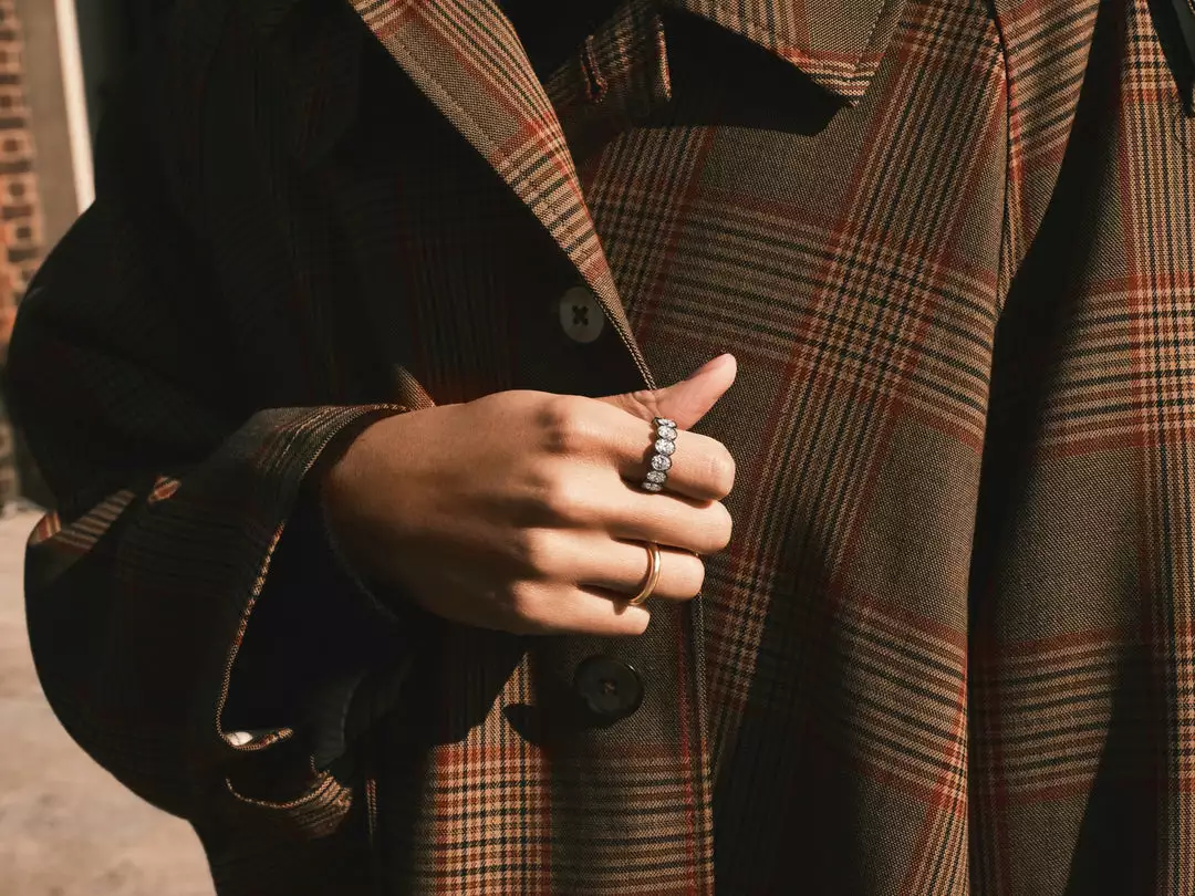 Jessica McCormack Fashion Jewellery Button Back Diamond Ring – Emerald Cut East/West 2.50ct BWG