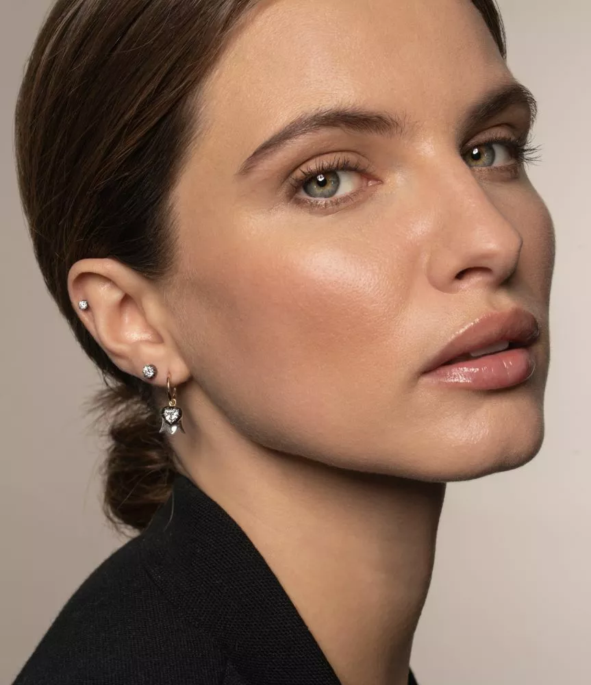 Each one features a beautiful diamond set in georgian cut-down setting, and is handcrafted in 18k blackened white gold and 18k yellow gold. Wear alone, or layered up with Jessica McCormack’s Signature Diamond Gypset Hoops.Â