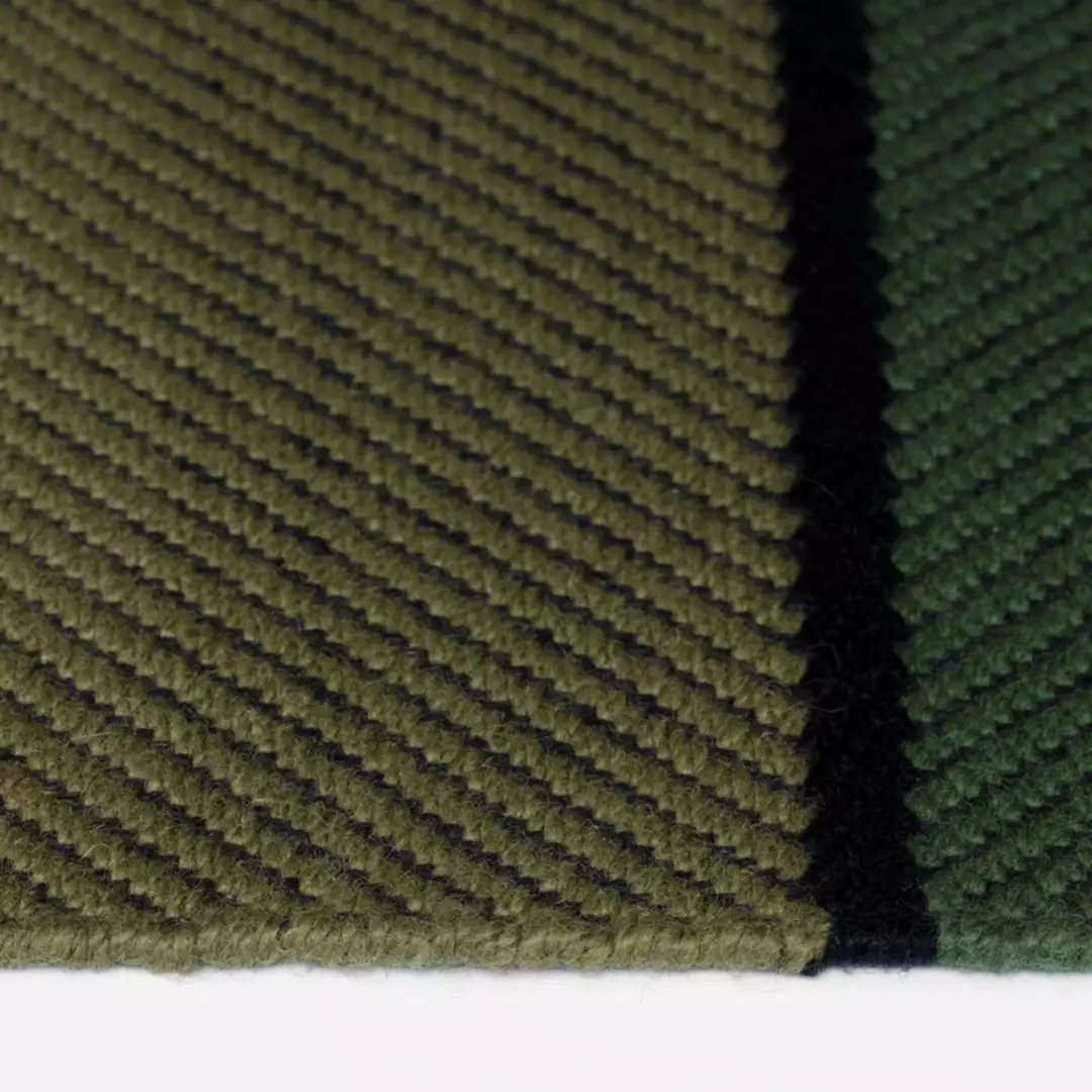 The design of the Merger Rug is inspired by colour blocking techniques. In this playful, fresh design, two tone-on-tone colours are juxtaposed on a light or dark base, creating a lively and uplifting colour-block effect. The differently sized colour blocks contain the diagonal texture and add a sense of balance and harmony to the design.