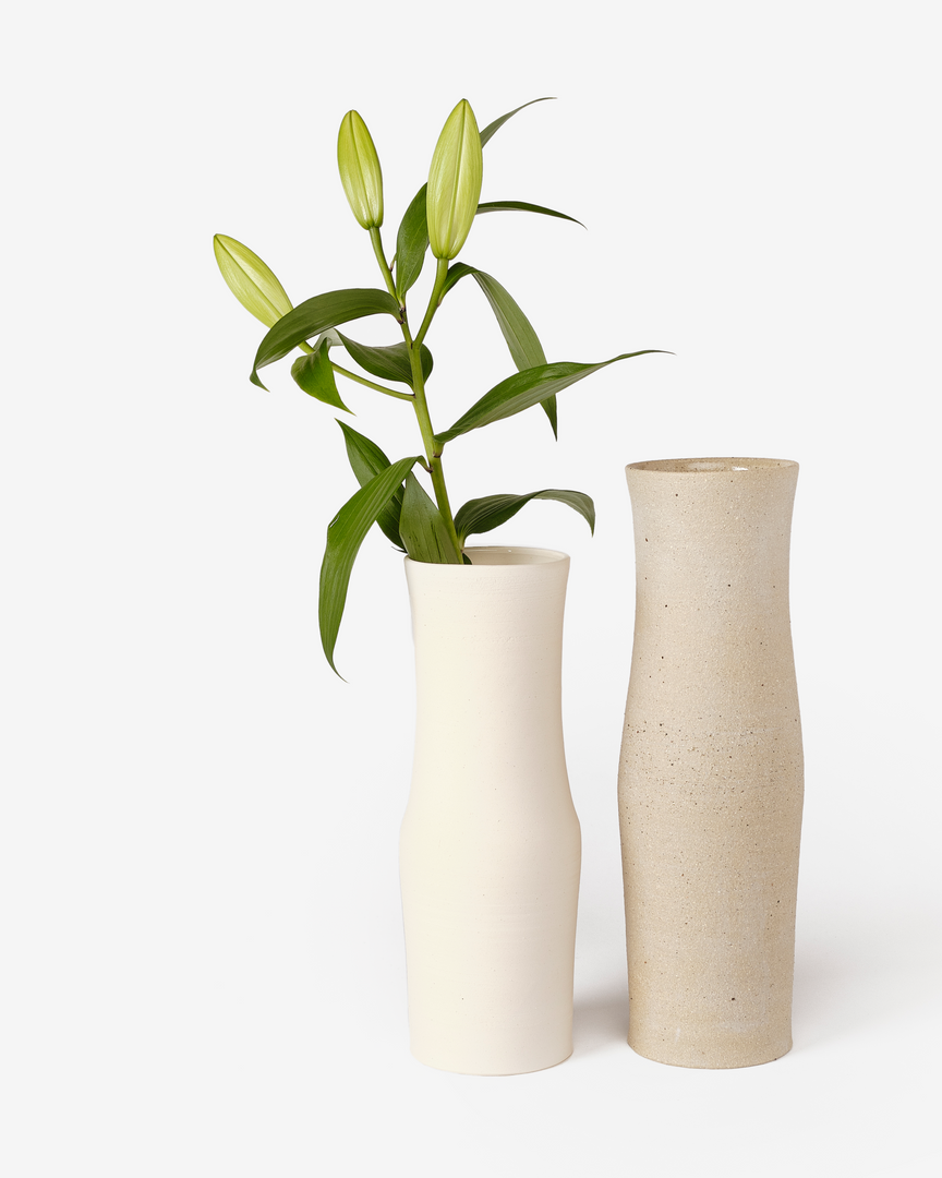 Margi Nuttall’s vase forms are bold and simple emphasising weight and stillness allowing material to speak, with clays and glazes reflecting this. The soft lines of the Ursula form makes a beautiful centrepiece or vase.