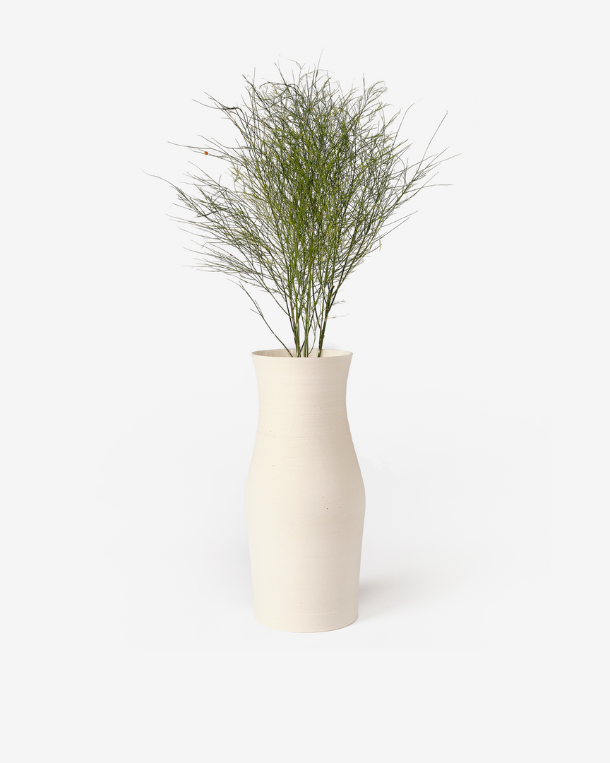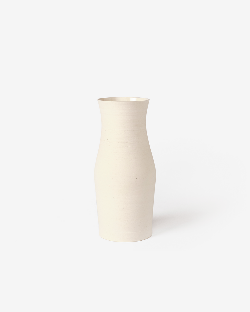 Margi Nuttall’s vase forms are bold and simple emphasising weight and stillness allowing material to speak, with clays and glazes reflecting this. The large rendition of the Ursula makes for a soft statement centerpiece or floor standing vase.Â