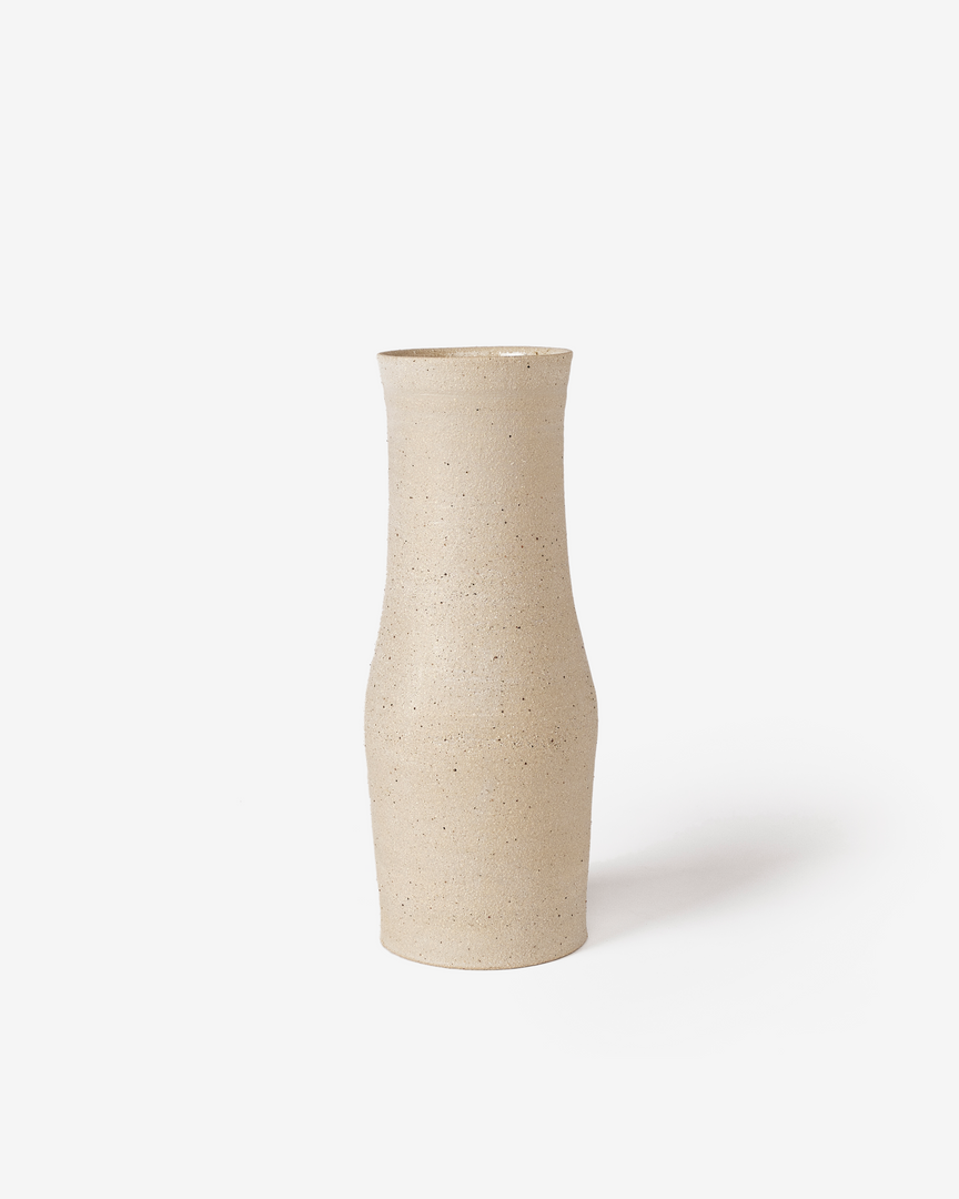 Margi Nuttall’s vase forms are bold and simple emphasising weight and stillness allowing material to speak, with clays and glazes reflecting this. The large rendition of the Ursula makes for a soft statement centerpiece or floor standing vase.Â