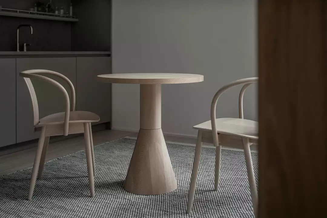 When creating the table, Designer in Chief of Massproductions Chris Martin wanted to scale down all details not adding function, that could disturb the museum and its surroundings. The end result come out of a creative experiment with large geometric forms, made of massive FSC-certified wood in ash.