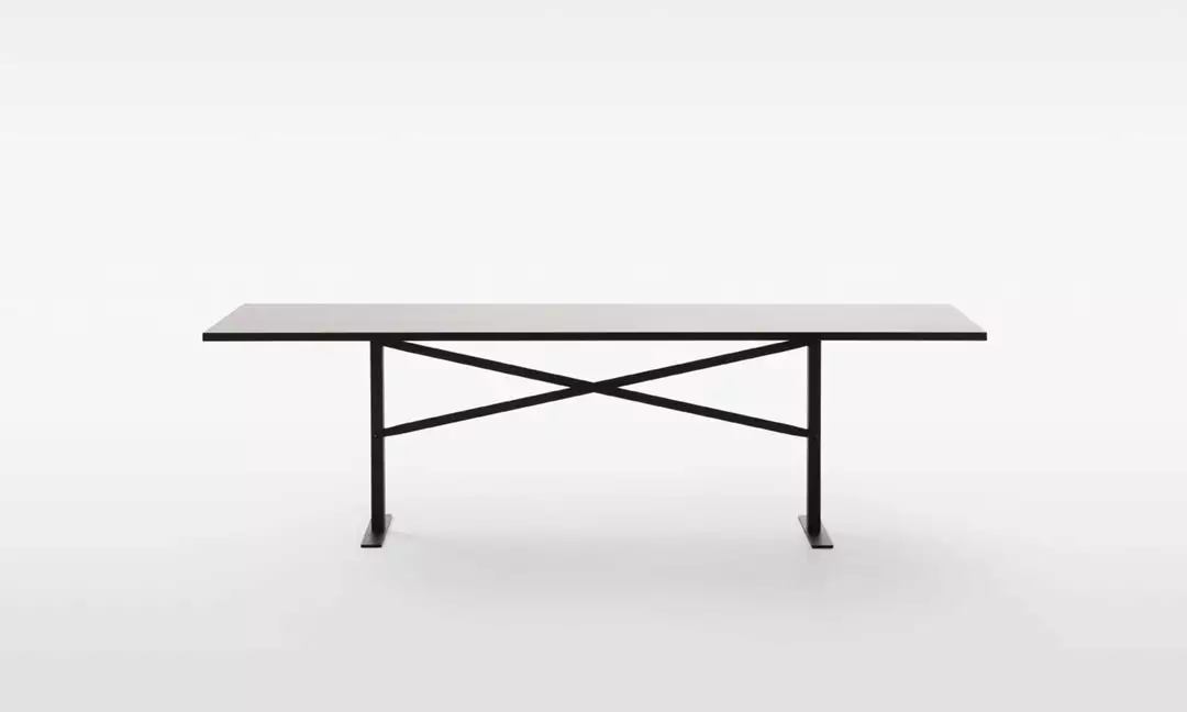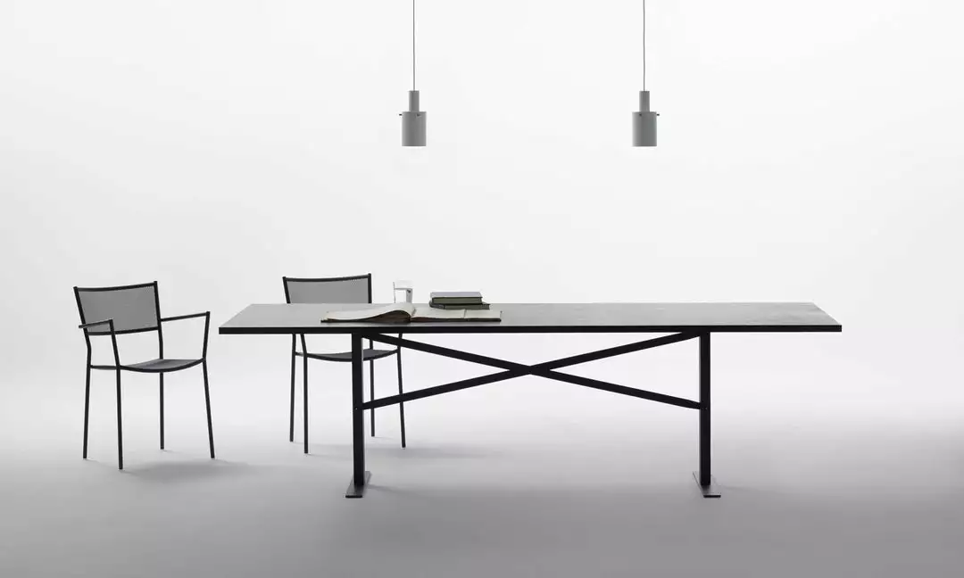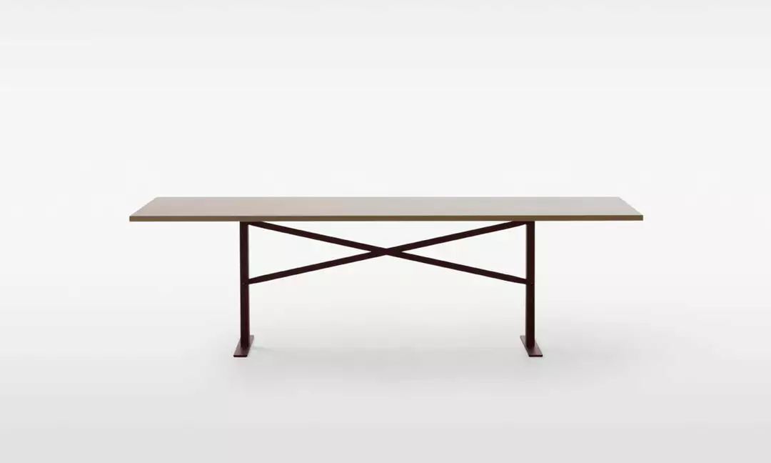 It looks sturdy because it is sturdy. The Ferric by Massproductions is a multifunctional table, built for hard work, creative conferences and delightful dinners. In fact, you can join segments together for a five meter long table, providing ample room for all those activities at once. The wooden top rests on a steel frame carefully optimized for stability and sustainability – a well-balanced solution evoking the industrial design of Jean Prouvé.