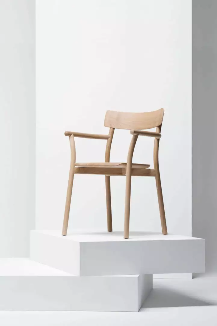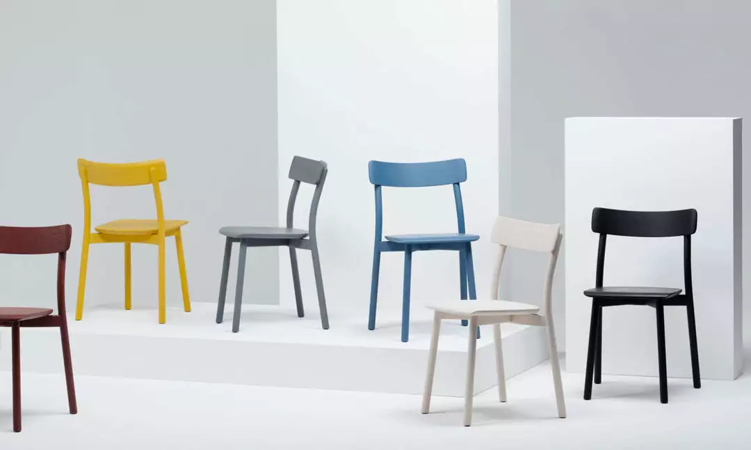 The Chiaro chair is not radical – the connections between the parts are direct and uncomplicated, and the structure under the seat (perhaps the most unique aspect of the design) evolved from an intention to simplify the joinery while reducing the total number of parts. Chiaro comes with and without armrests and both versions stack for more efficient shipping and storage. The chairs are available naturally finished in oak and in ash, as well as in white, gray, red, blue, yellow, and black stained ash.