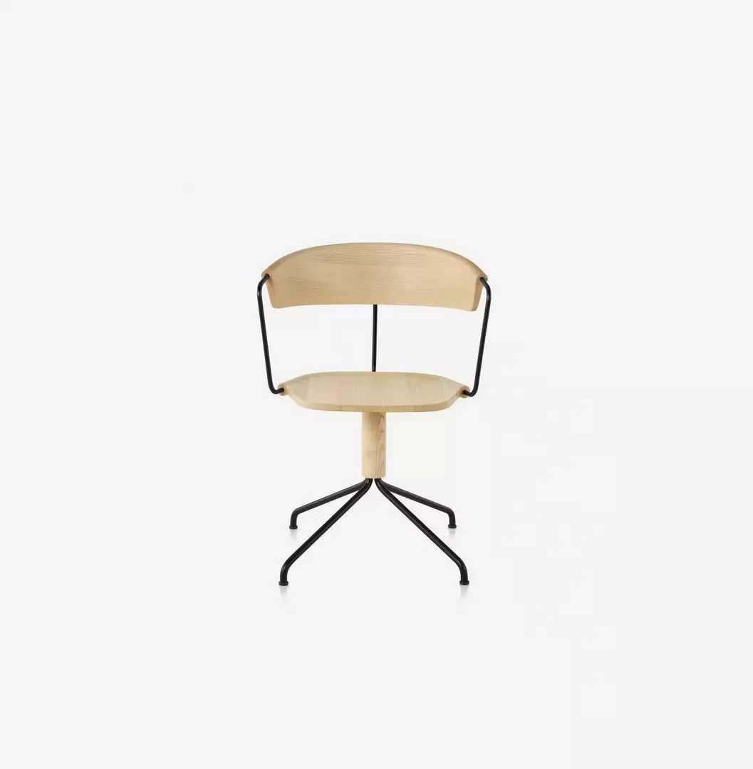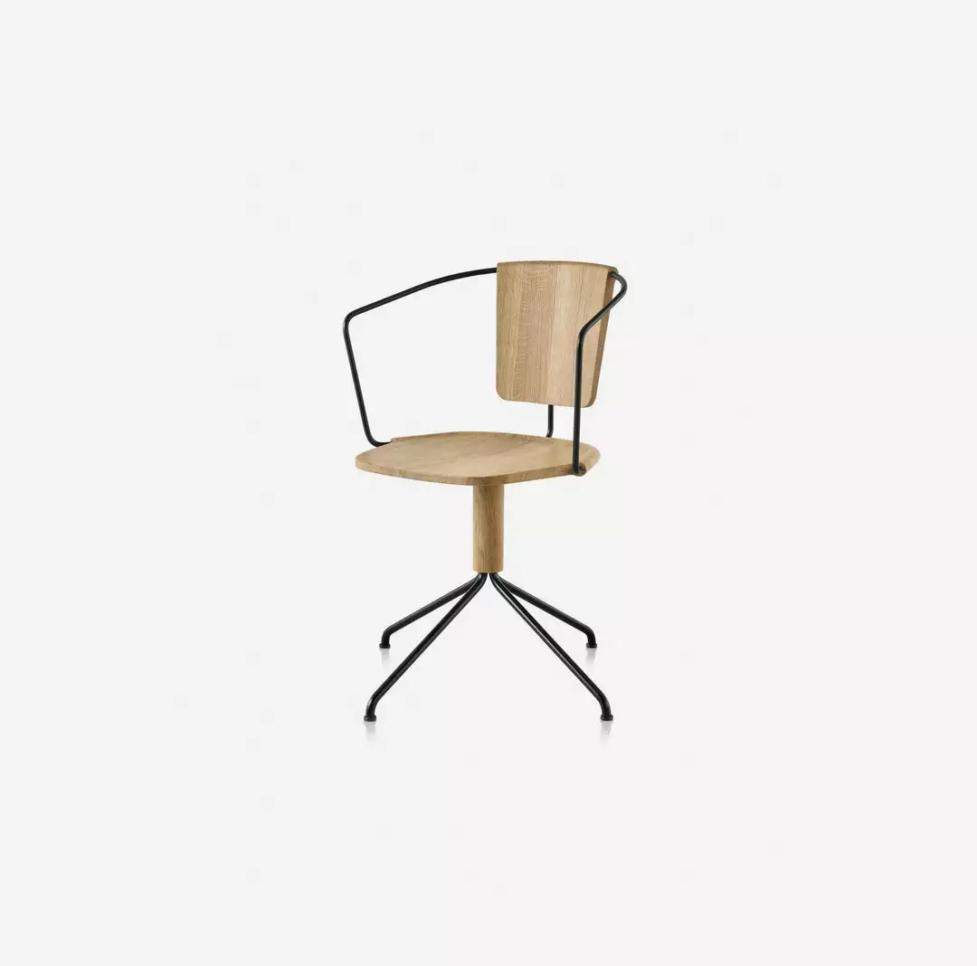 Designed by Ronan & Erwan Bouroullec for Mattiazzi, the gently carved wooden pieces of the Uncino Sled Chair are held in place by bent metal rods – while wood remains the main actor, the metal parts play a fundamental role in the construction. The metal structure joins the pieces of wood in an almost organic overlap. The wood embraces the metal rods whose form subtlety appears on the wooden surface like a prominence.