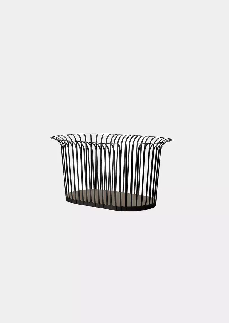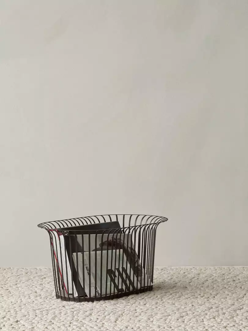 A modern storage solution with a traditionalist feel, the Ribbon Basket contrasts sleek powder coated steel with soft, inviting curves. Crafted with precision, vertically positioned metal strips are formed into a gently rounded lip that makes it easy to carry the basket from room to room. Cushioned on the bottom with tonal leather for an exclusive feel and elevated on silicone feet for stability and protection, it adds instant graphic appeal to a room, as a practical and decorative home for magazines, home textiles, accessories and more.
