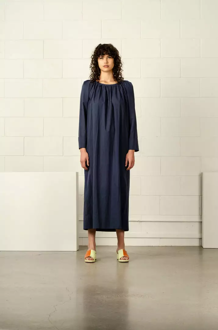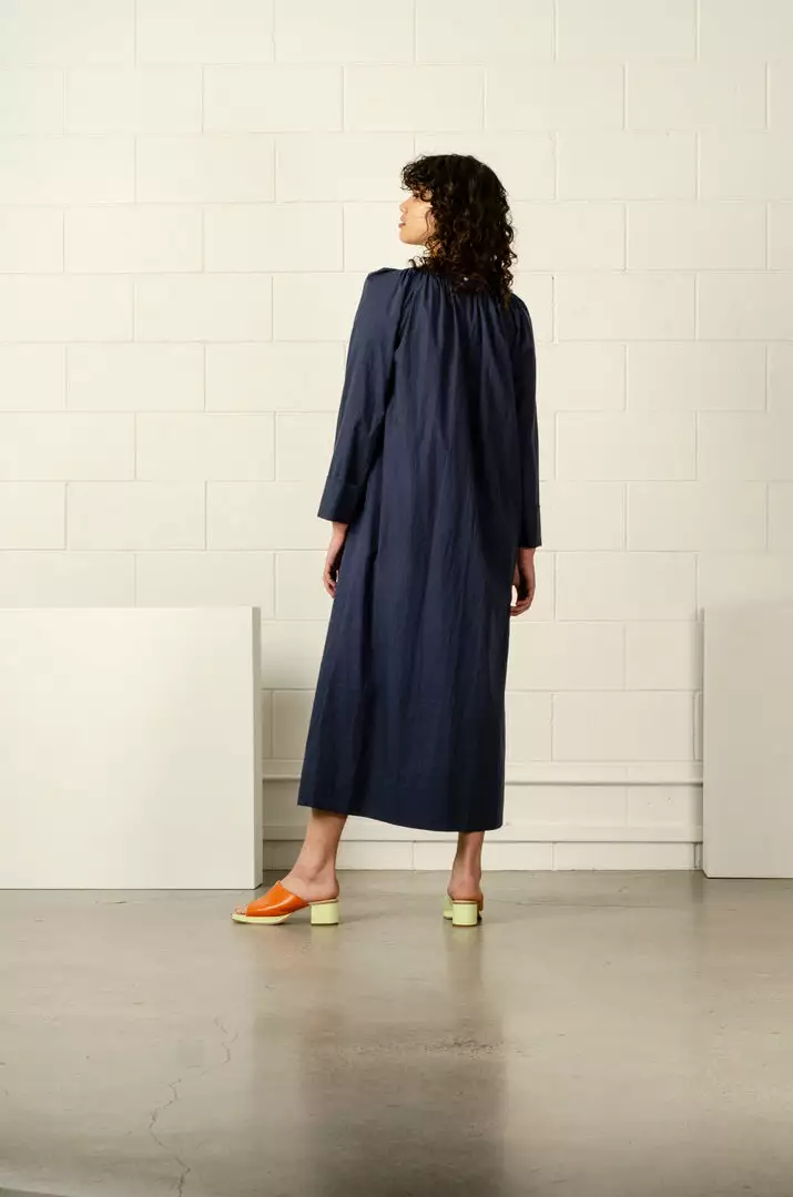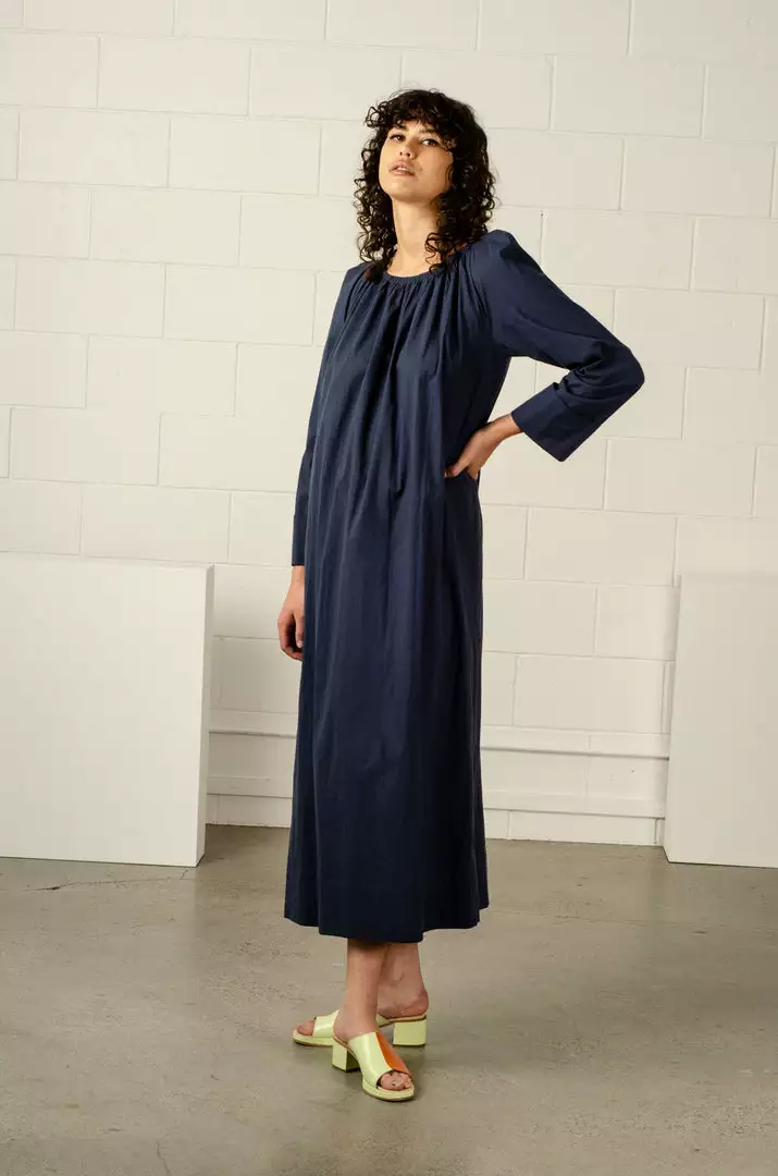 The Maria Dress from Penny Sage is the perfect long sleeve, full length dress for summer. Made from a soft cotton poplin, the dress features a gathered neckline and deep folded cuffs.