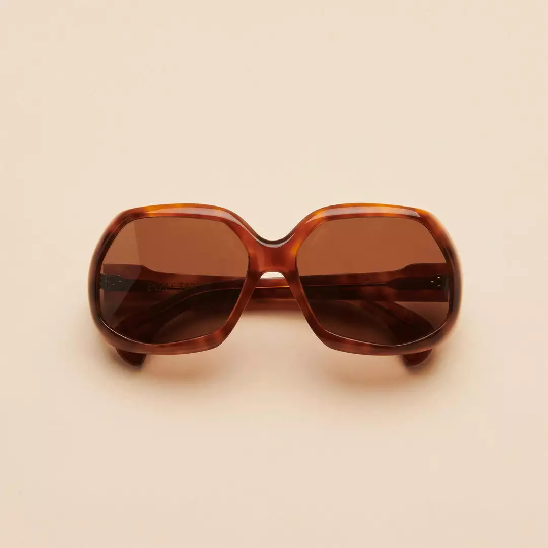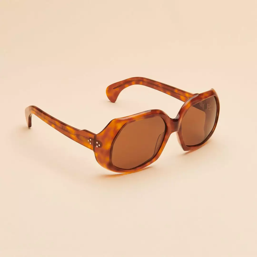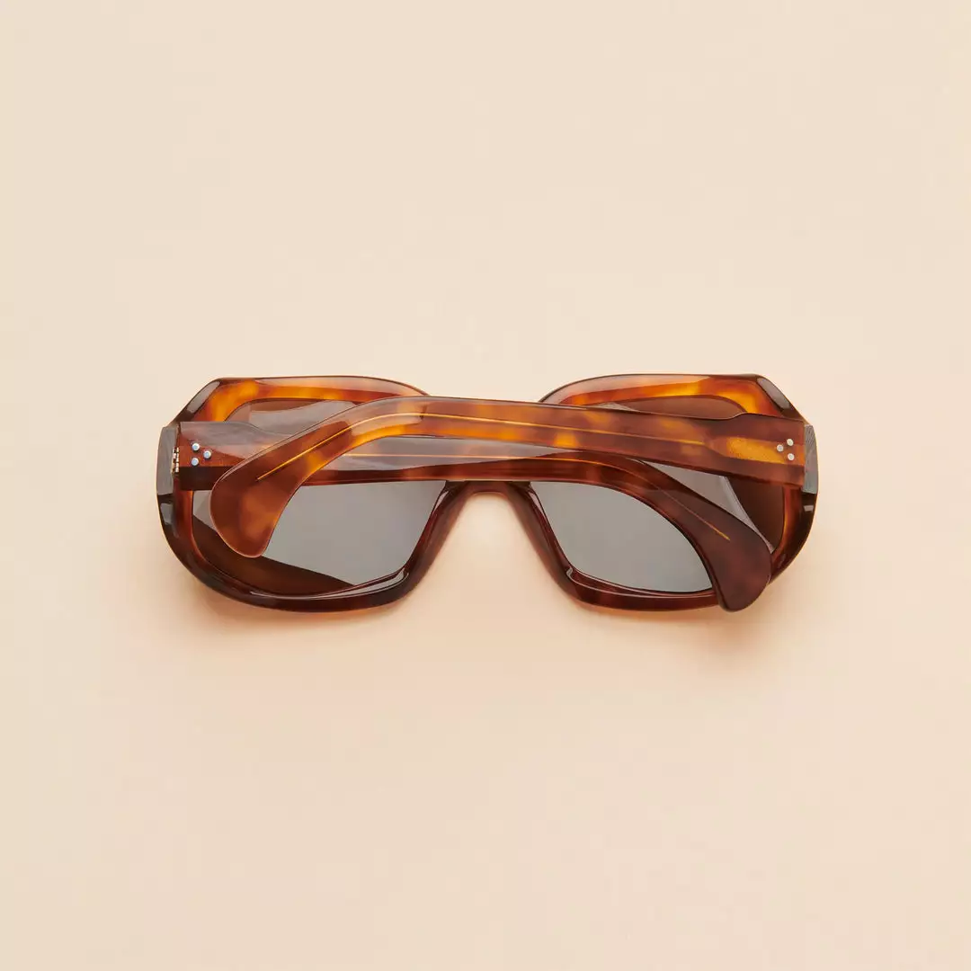 A softer frame that sits just below the brow bone. Tapered to the sides to soften the larger frame. Available also in the Tobacco lens or Black frame with Warm Olive lens.