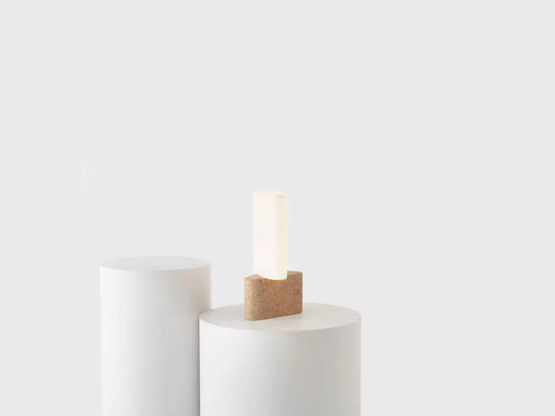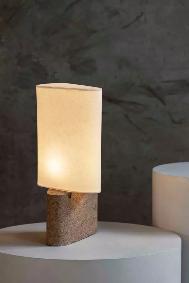 Executed with a Japanese paper shade and either a sand-cast bronze or cork base, the Fulcrum Lamp uses its classically rooted two-part format to explore a rich dialect of material and mass.