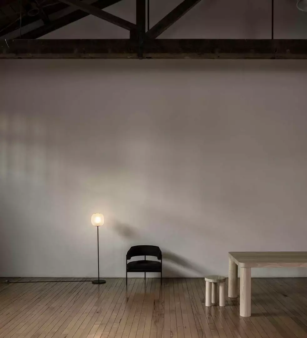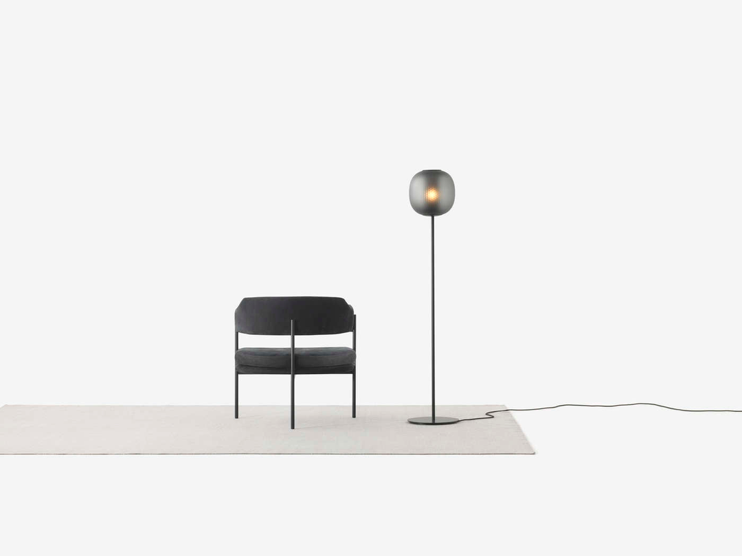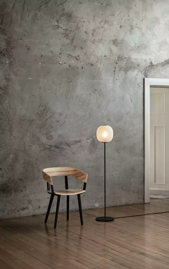 The Bloom Floor Lights’ by Resident super-elliptical shade form is inspired by the gentle dynamic flow of paper lanterns. Its glorious lit effect is the result of transparency and light. Two contrasting materials – a finely perforated mesh core and frosted blown glass, combine to project a soft focus texture onto the inside of the shade.