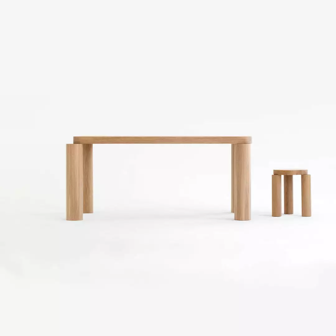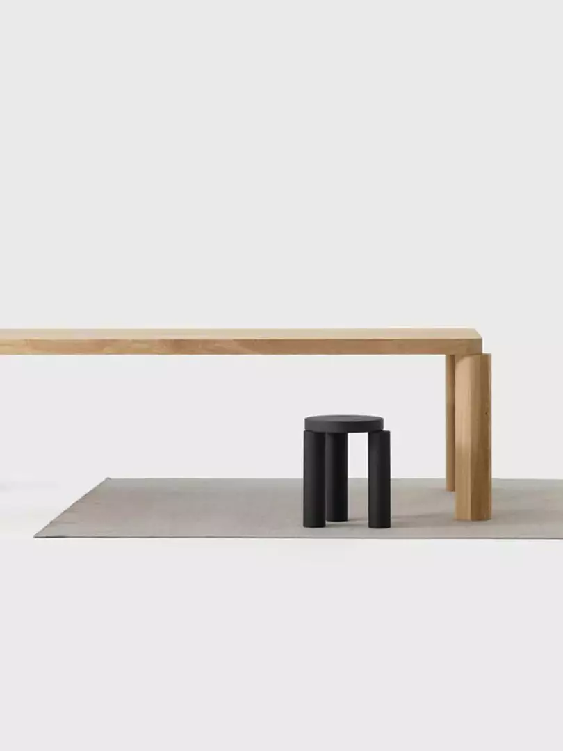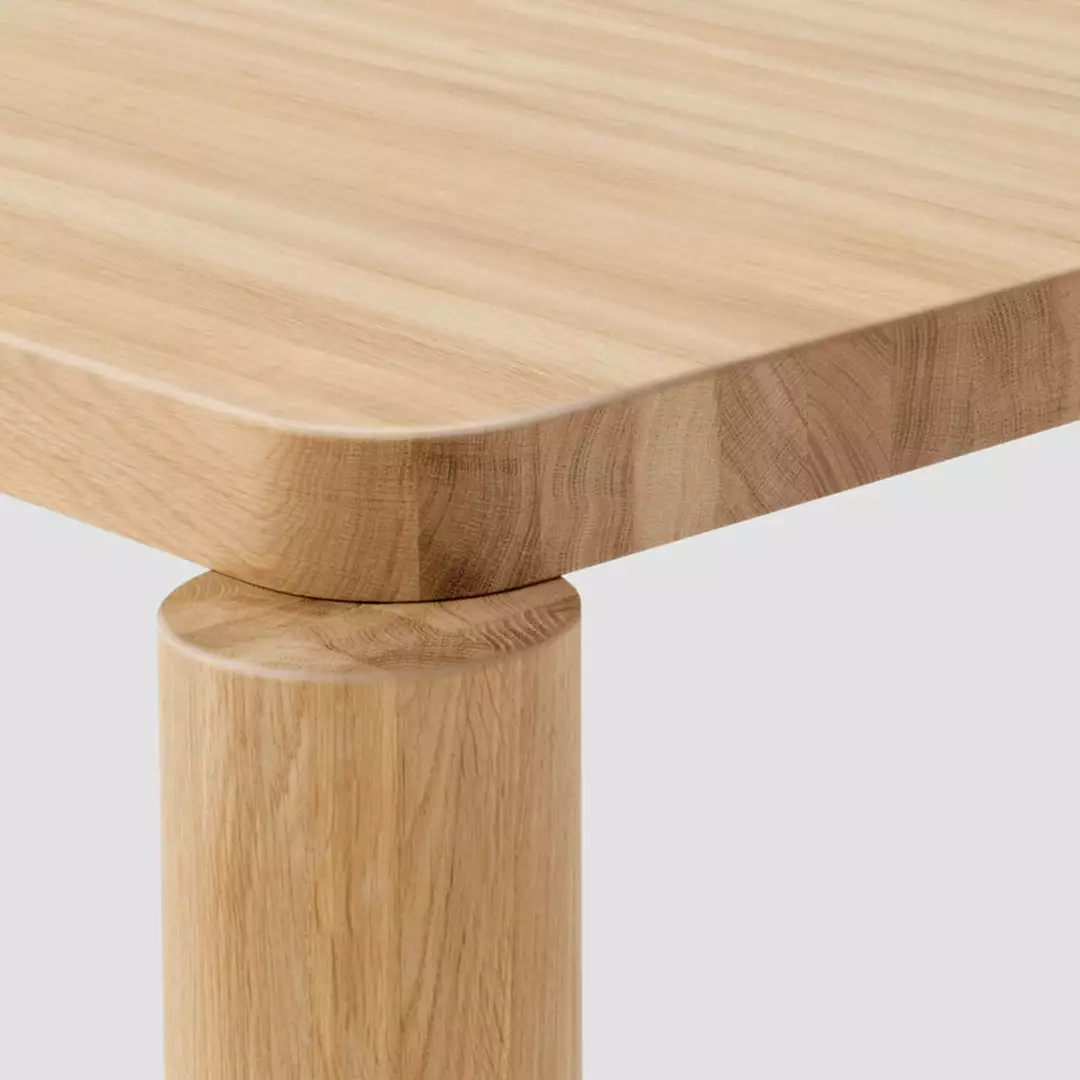 The Offset Dining Table is a bold and heavy-duty furniture piece which displays the beauty of solid oak in generous proportions. Designed by Philippe Malouin, each Offset leg attaches to the table top by way of an off-centre threaded connector – ensuring that each leg finally rests in an individualistic position.Â