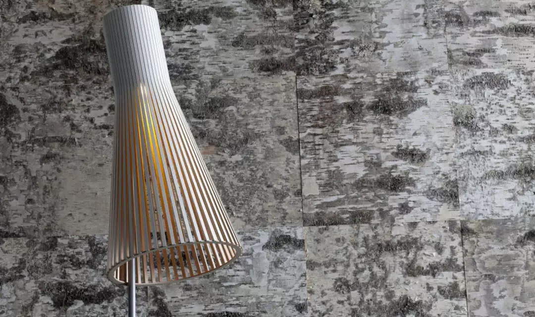 The Secto 4210 floor light by Seppo Koho is handmade out of laminated birch slats and connected by rings of aircraft plywood. They are available with either a white, black, walnut or natural finish on the outside, all feature a natural interior.