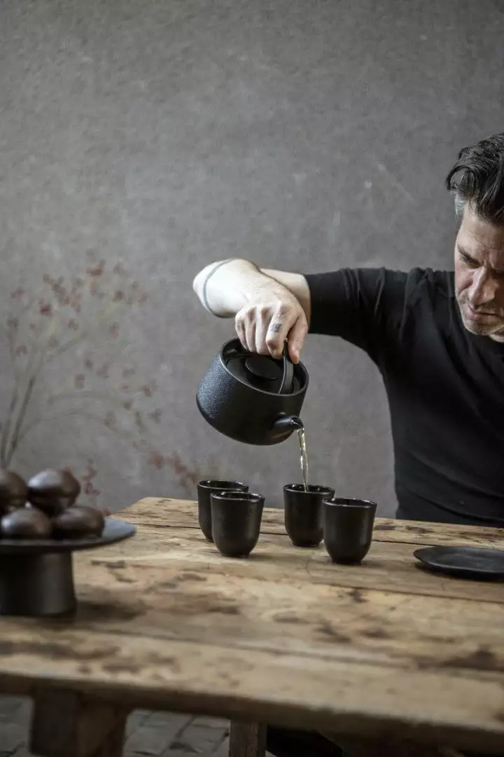 Designed by Dutch chef Sergio Herman for Serax, the Inku Cast Iron Teapot is inspired by the Japanese tea tradition and the ideal of sophisticated simplicity. Part of Serax’s Inku tableware collection which celebrates wabi-sabi – beauty found in the imperfect, the subtle texture of its curved body infuses your steeping ritual with elements of tactile elegance, featuring a foldable handle that is both practical for storage and allows for graceful serving. The Inku Cast Iron Teapot has a matte finish, and an angled spout that enables a clean pour. The perfect choice for tea devotees wanting to imbue their daily brew with a touch of Japanese minimalism.