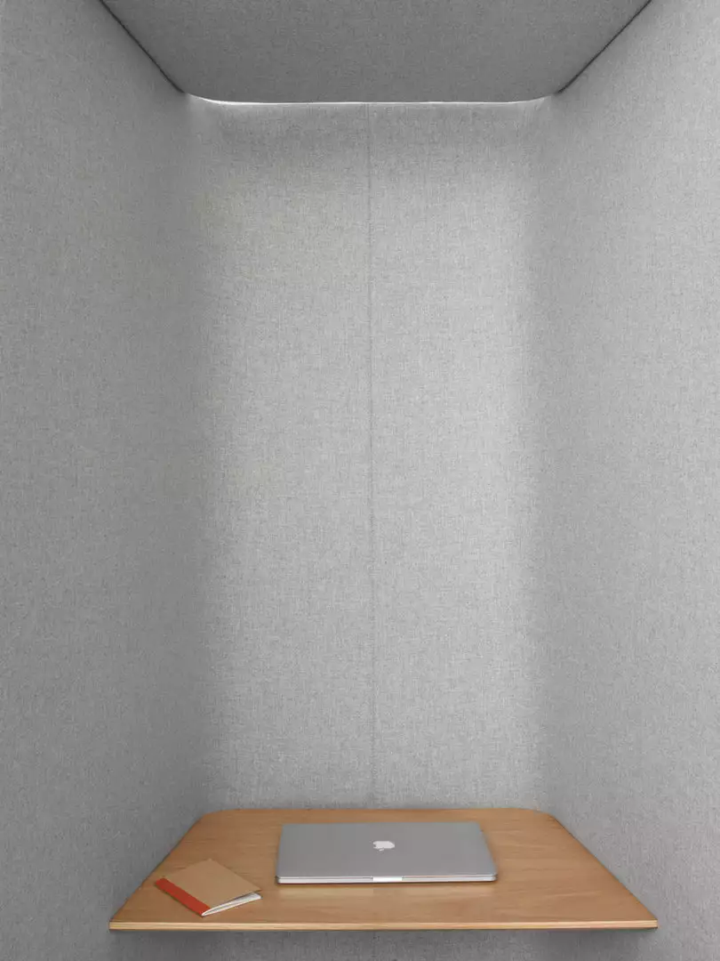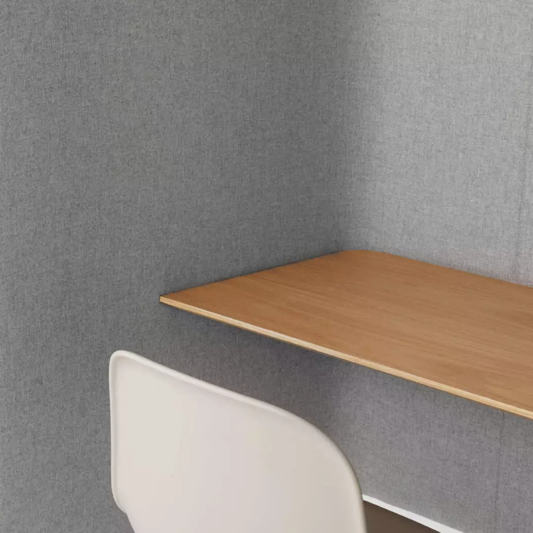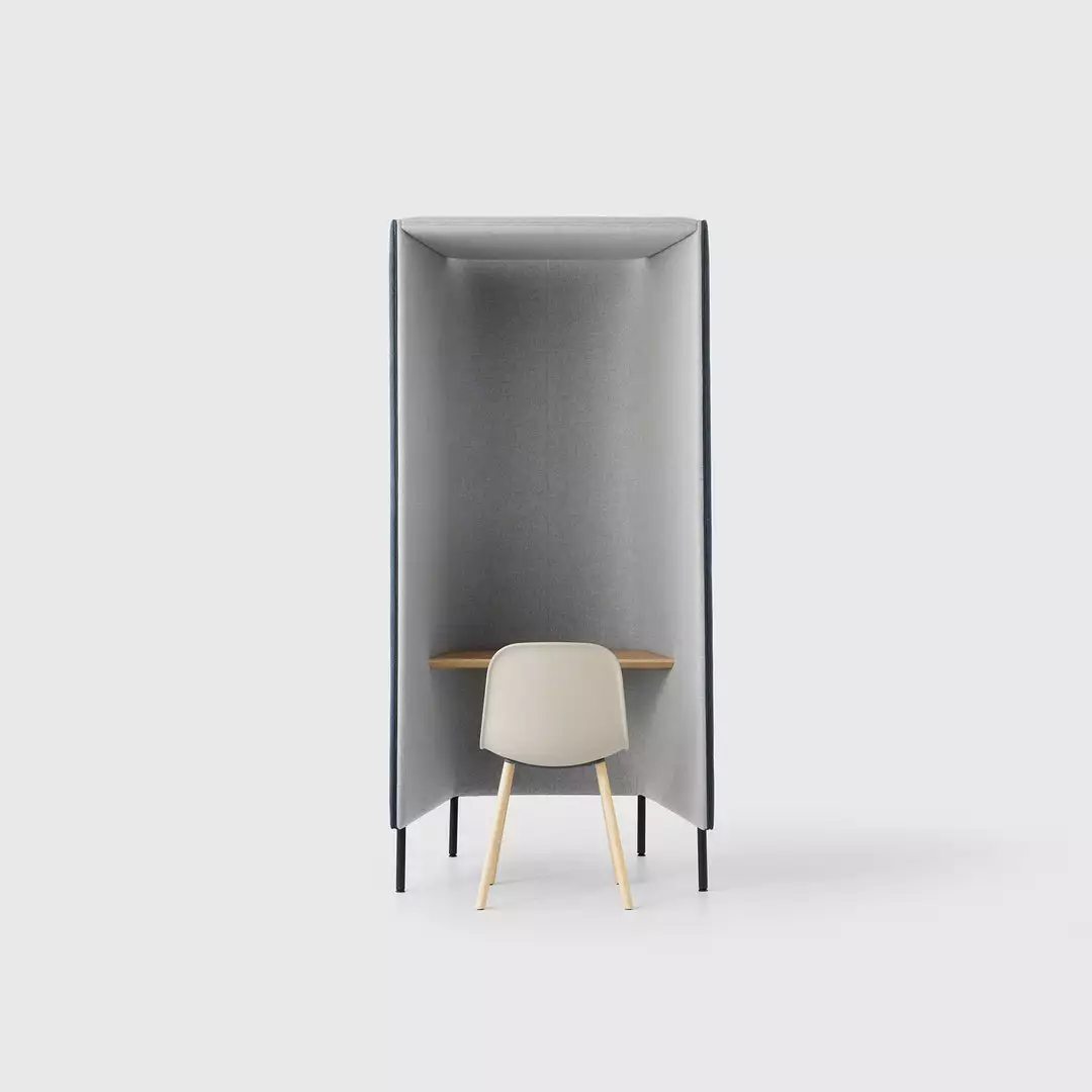 An ideal retreat in an open plan office environment, with its private desk and optional soft wiring and desk lighting, it is the perfect place to plug-in and work alone in quiet. With it’s roof and semi-enclosed structure, it offers exceptional acoustic qualities in today’s modern workspace. The Cabin Desk by Simon James is available in a large range of fabric options.