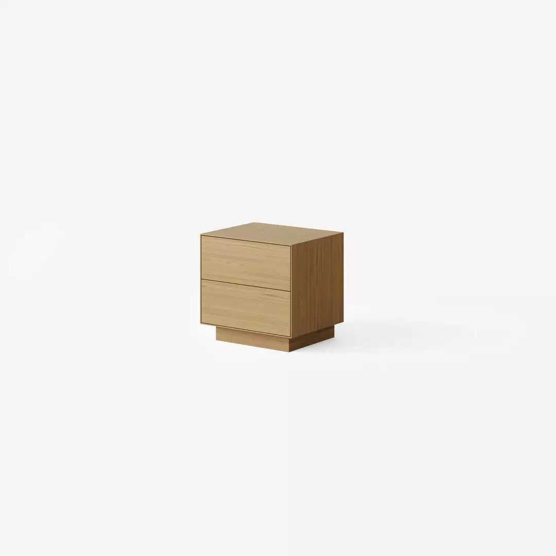 The Seam Unit is available in a 2 drawer bedside. It has touch pop-out drawers and is available in oak veneer with a range of finishes. Ideal for the bedroom and paired with the Halford Bed by Simon James.