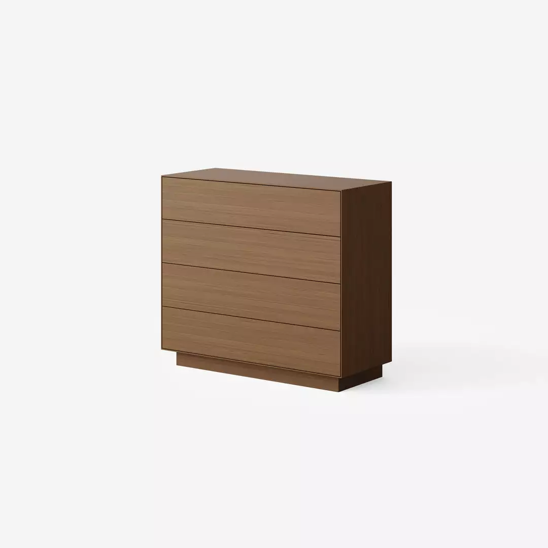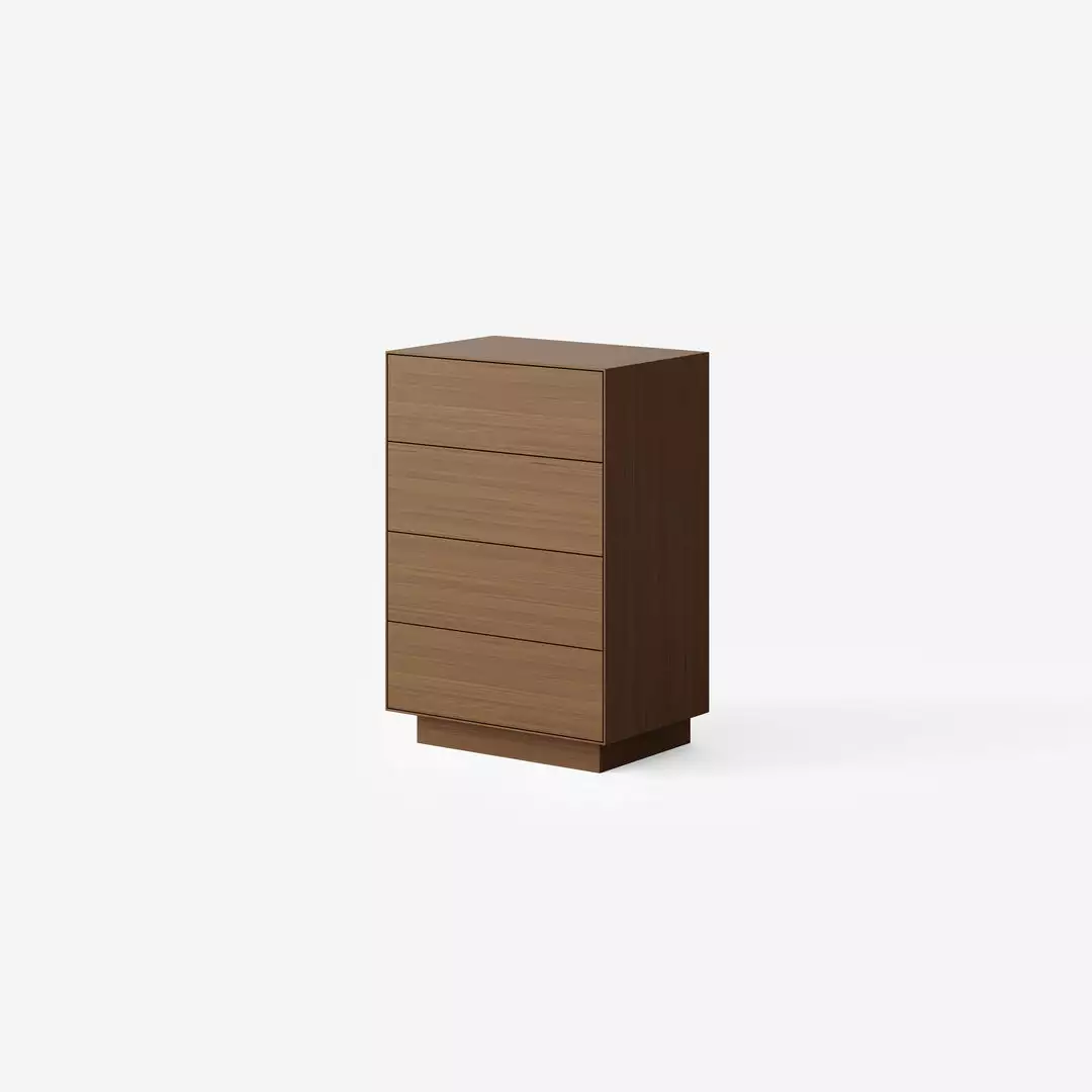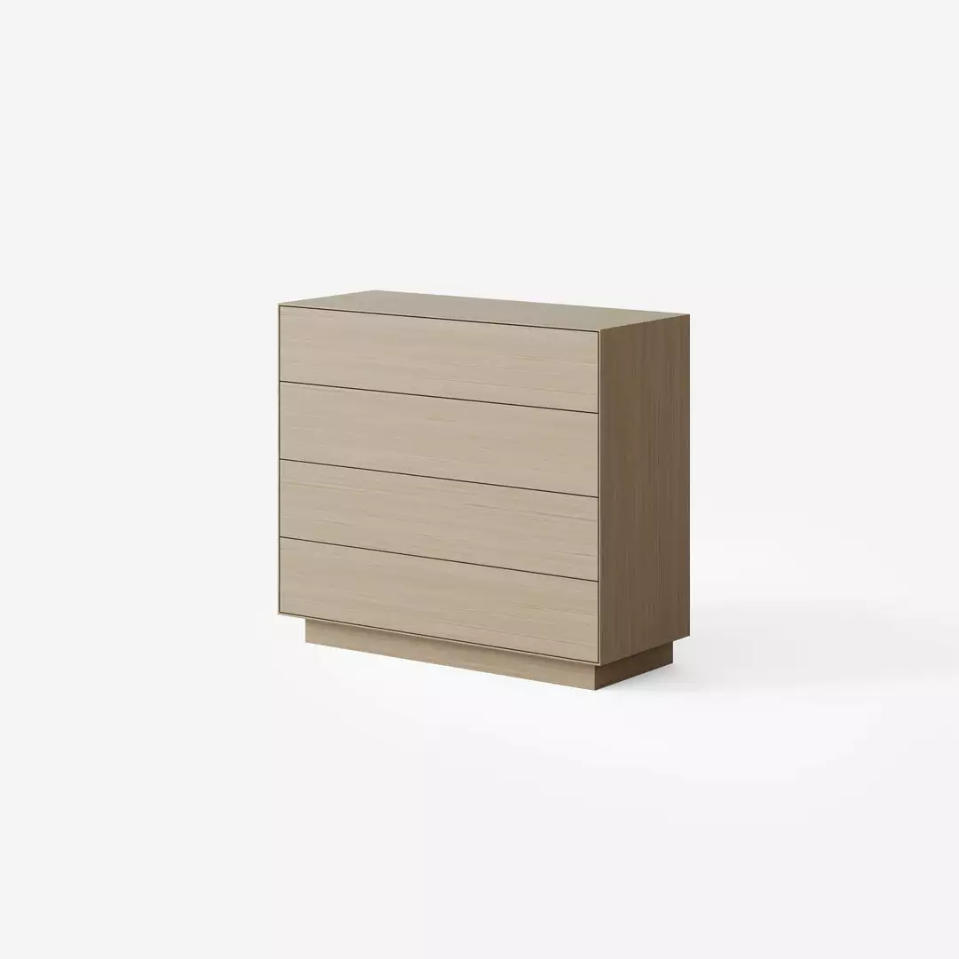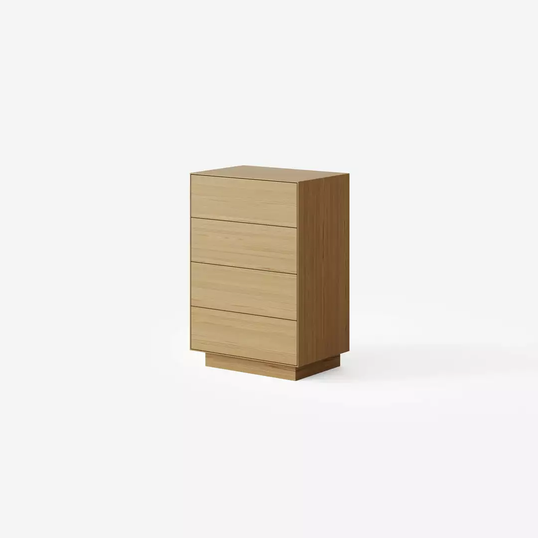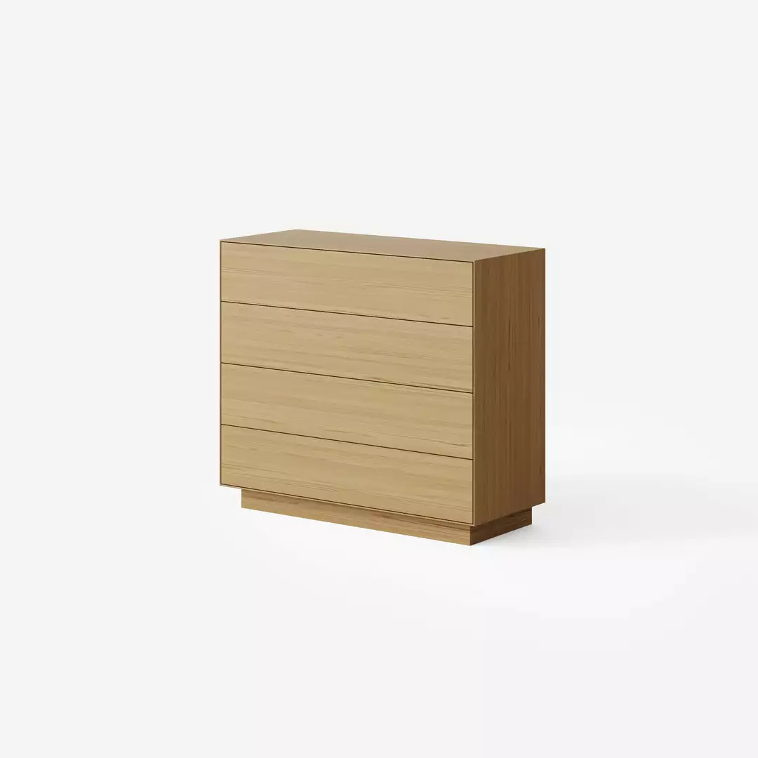The Seam Unit is available in a 4 drawer tallboy configuration. It has touch pop-out drawers and is available in oak veneer with a range of finishes. Ideal for the living room, bedroom or hallway.