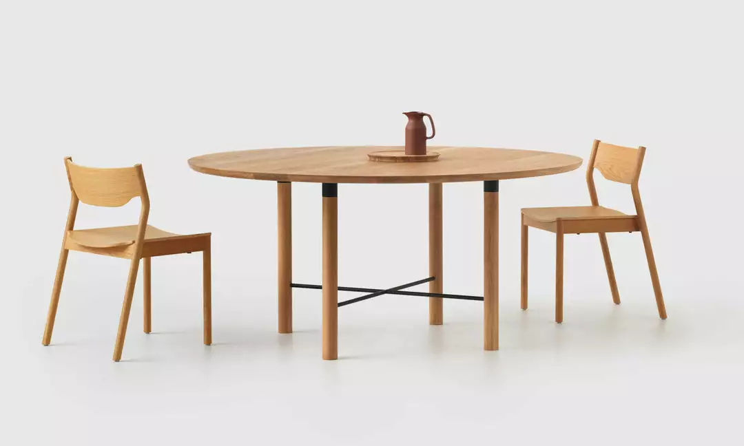 Constructed from solid oak and steel, the Underline round dining table design explores the integrated seamless connection point between the two materials. This design is available in round or rectangular size options and is suitable for most residential or commercial environments.Â