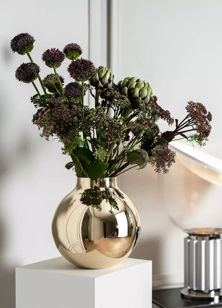 The vases called Boule, which means “sphere” in french, are designed by French-German designer Olivia Herms for Skultuna. Based on the most fundamental form of “containing” – the round bowl. The nearly perfect sphere containing the water opens up to a collar that holds the flowers. This beautiful vase looks just as appealing when left empty.