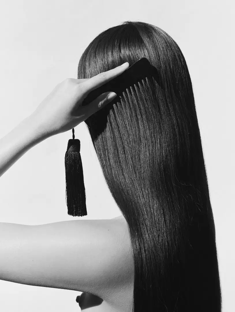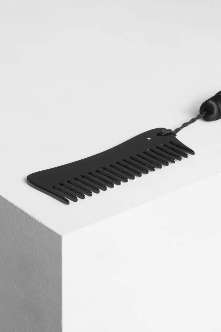 The beautiful Tassel Comb in Black from Sophie Buhai is the perfect object to adorn your vanity, or as an exceptional gift. This decorative comb is made from acetate in france, and accented with a stunning silk tassel.Â