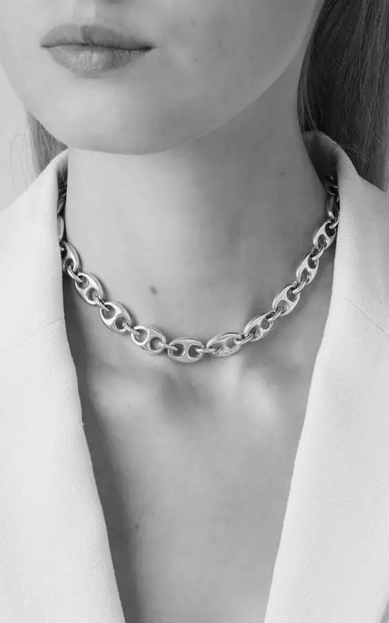 The Small Barbara Chain Necklace is a softer take on the classic Sophie Buhai Barbara style. The flat links sit comfortably along the collarbone and are crafted in sterling silver.