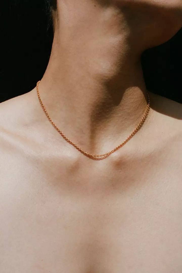 The Nage Gold Chain Necklace from Sophie Buhai is a delicate Gold Vermeil chain in a textured link, giving a striking look against the skin. Perfect on its own for everyday wear or as a layering piece.