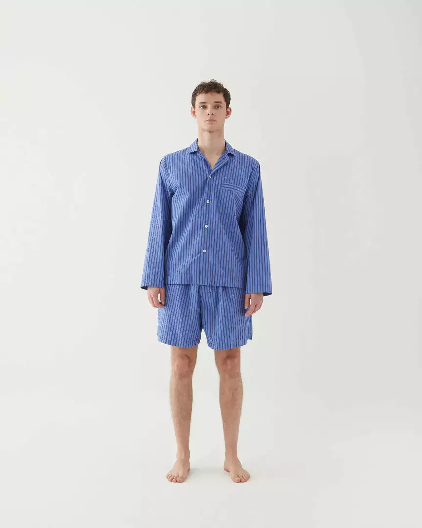 The breathable organic-cotton poplin weave of Tekla’s pyjama shirt creates a smooth surface ideal for lounging at home. It’s shaped to a loose silhouette with a patch pocket and classic collar and fastens with small white buttons.