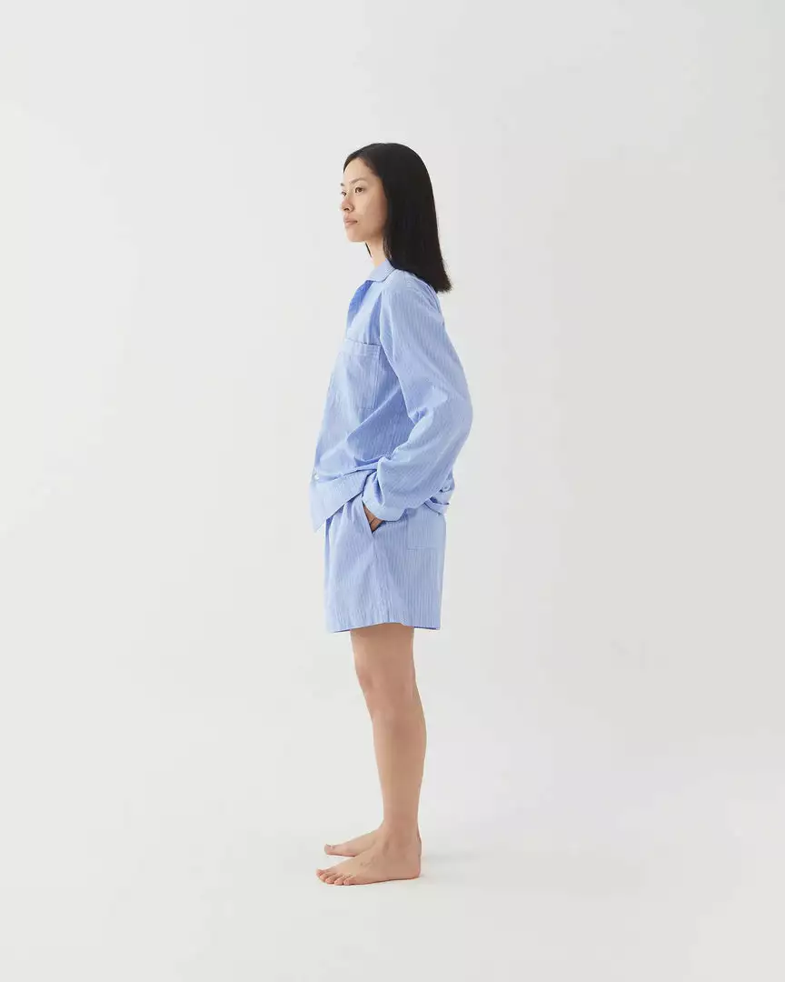 Tekla’s sleep shorts are crafted from smooth organic-cotton poplin for impeccable breathability. They’re shaped with an elasticated drawstring waist and are fitted with inseam pockets.